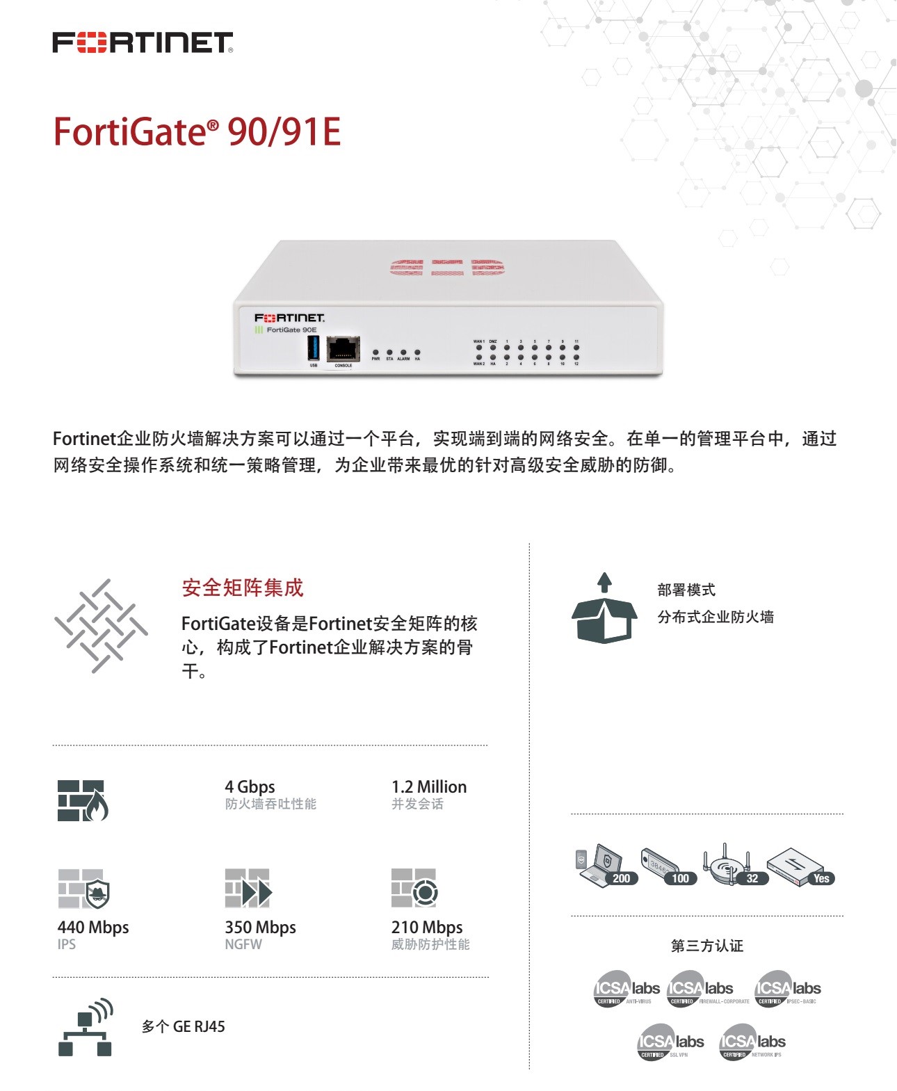 飞塔Fortinet- FortiGate90E/91E企业防火墙