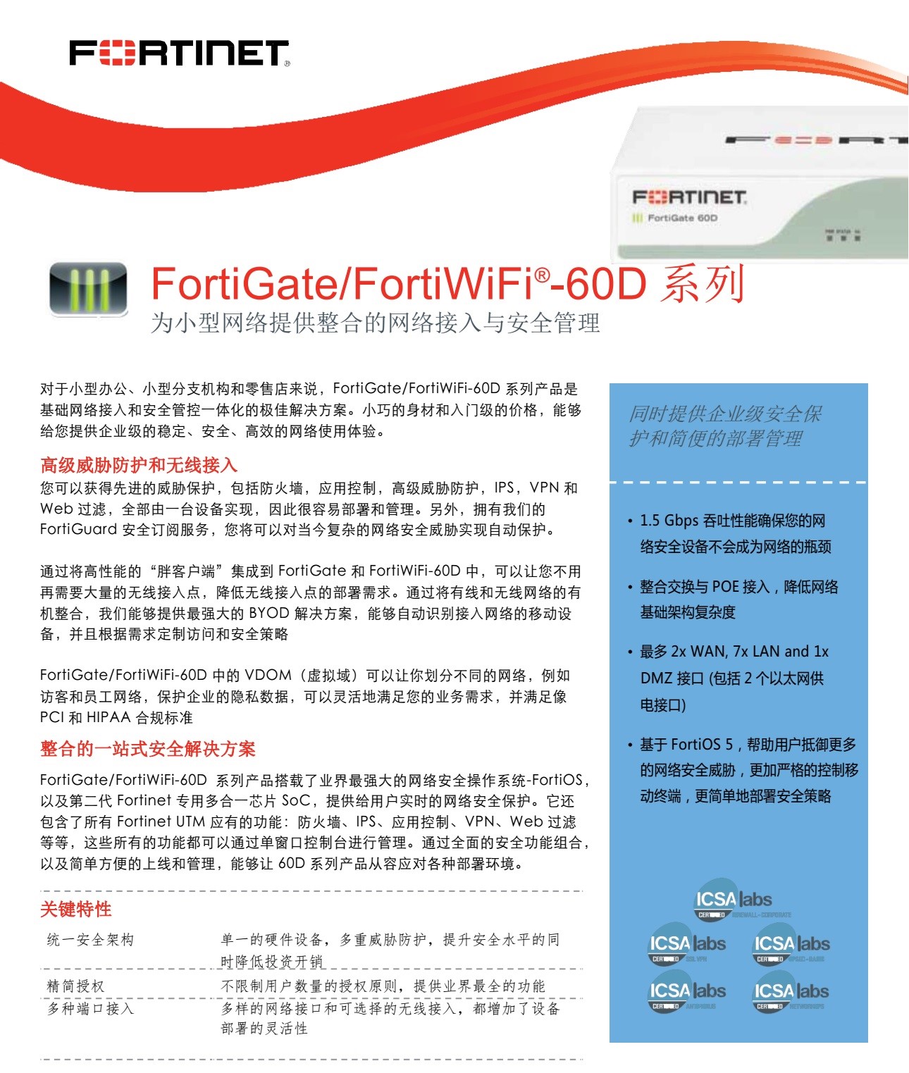 飞塔Fortinet- FortiGate60D系列企业防火墙