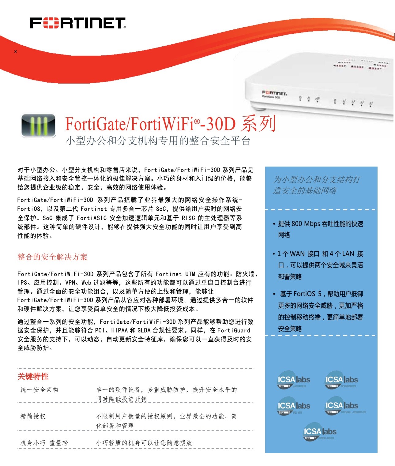 飞塔Fortinet-FortiGate30D系列小型企业防火墙
