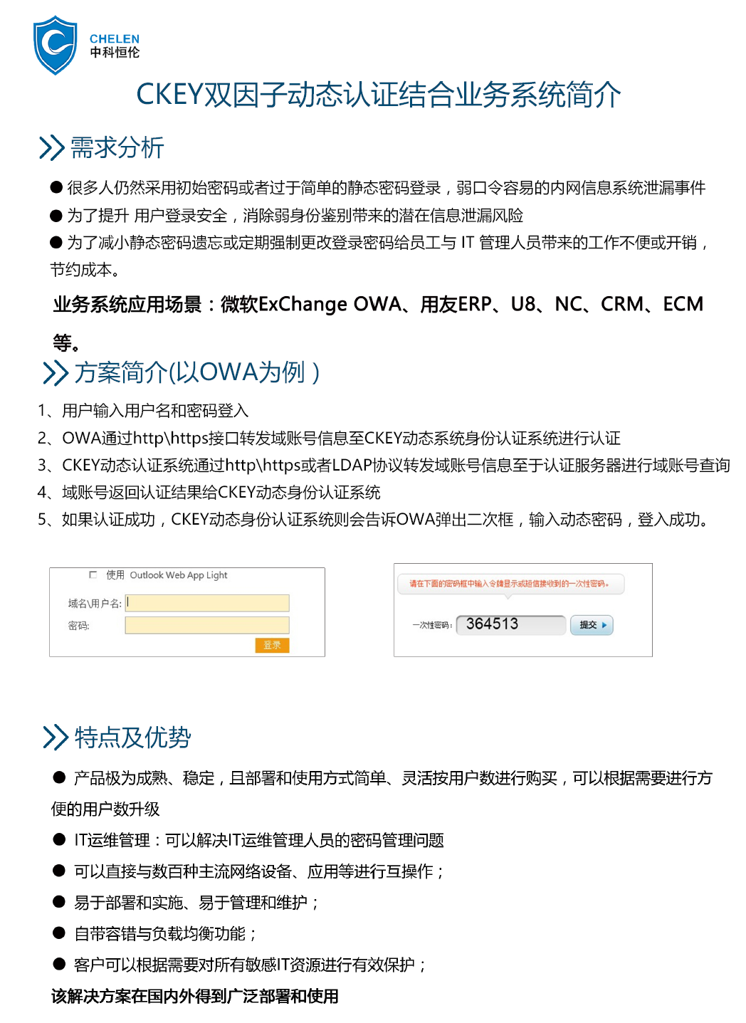 动态密码无法猜测,且一次使用有效,有效解决静态密码被窃取后导致的非授权访问问题。